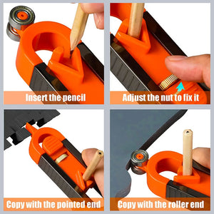 Its locking adjustment system allows you to copy complex shapes with total precision, avoiding errors and ensuring perfect fits. Simply fix the pencil, slide the tool and obtain the exact marking of the desired contour. The double-ended design offers a metal roller on one side, reducing friction and protecting surfaces, while the fine tip on the other side allows for detailed copies.