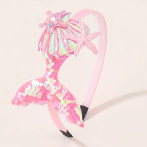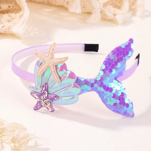✔ 1x Tiara Infantil Sereia com Lantejoulas e Pérolas